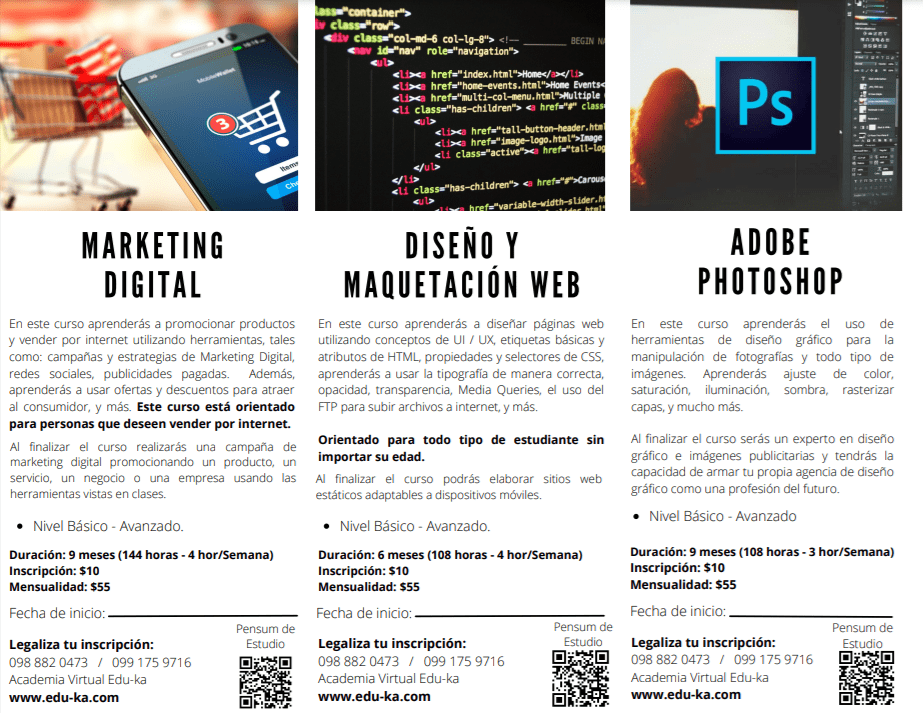 Triptico de Cursos Web